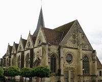 À l’intérieur du château construit en 1236 par Thibaut IV, Comte de Champagne, roi de Navarre, existaient deux chapelles dédiées à Saint Front et à Saint Sébastien. Elles furent réunies par un chœur et une nef en 1500. Les pierres du château, en démolition, furent utilisées dans les travaux de l’église. La tour carrée, haute de 22 mètres, percée de 4 baies géminées à chaque étage et surmontée d’une flèche octogonale de 16 m de hauteur est la partie la plus ancienne avec la porte romane du nord-ouest qui date du XIIIème. A noter que les murs de l’église ont un temps abrité « Le vœu de Louis XIII », tableau de Simon Vouet, mais que ce chef d’œuvre a dû être déplacé dans un lieu de la commune plus propice à sa conservation.